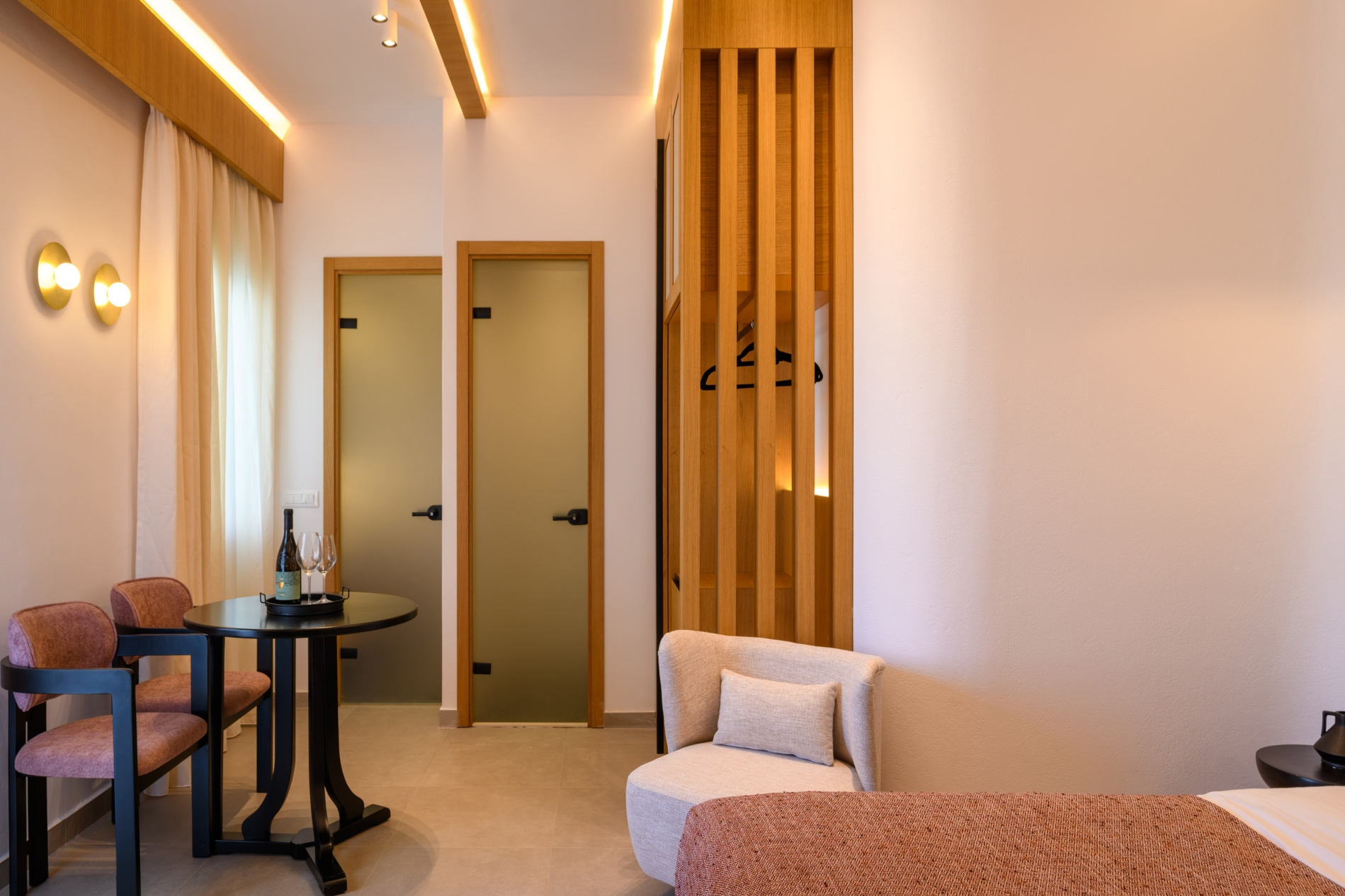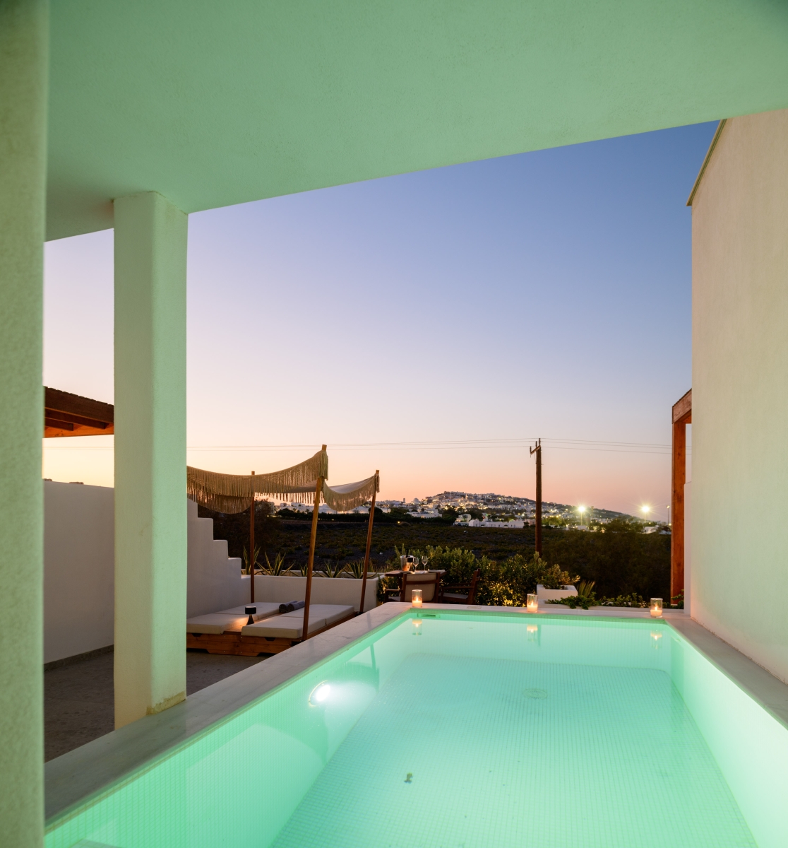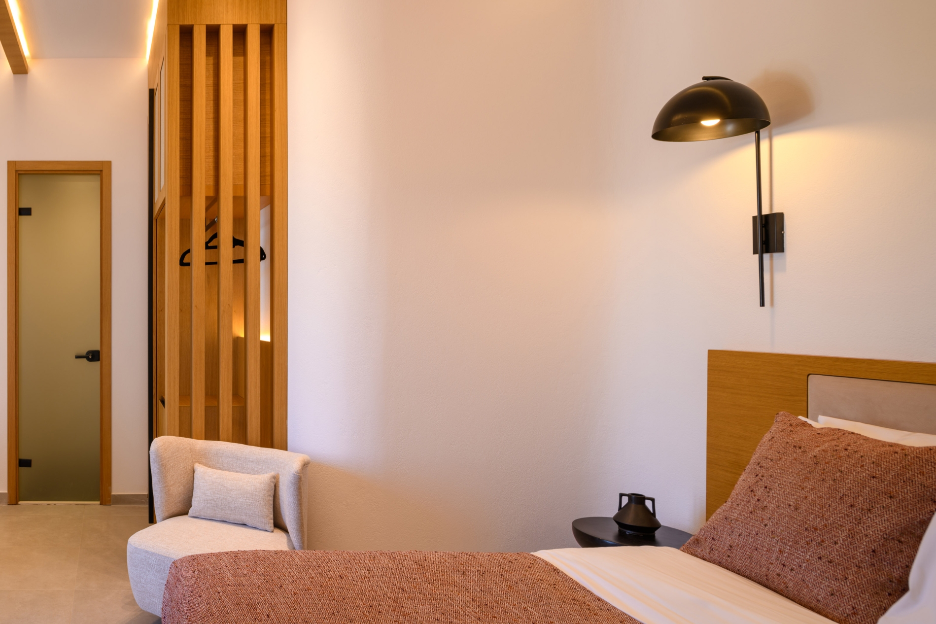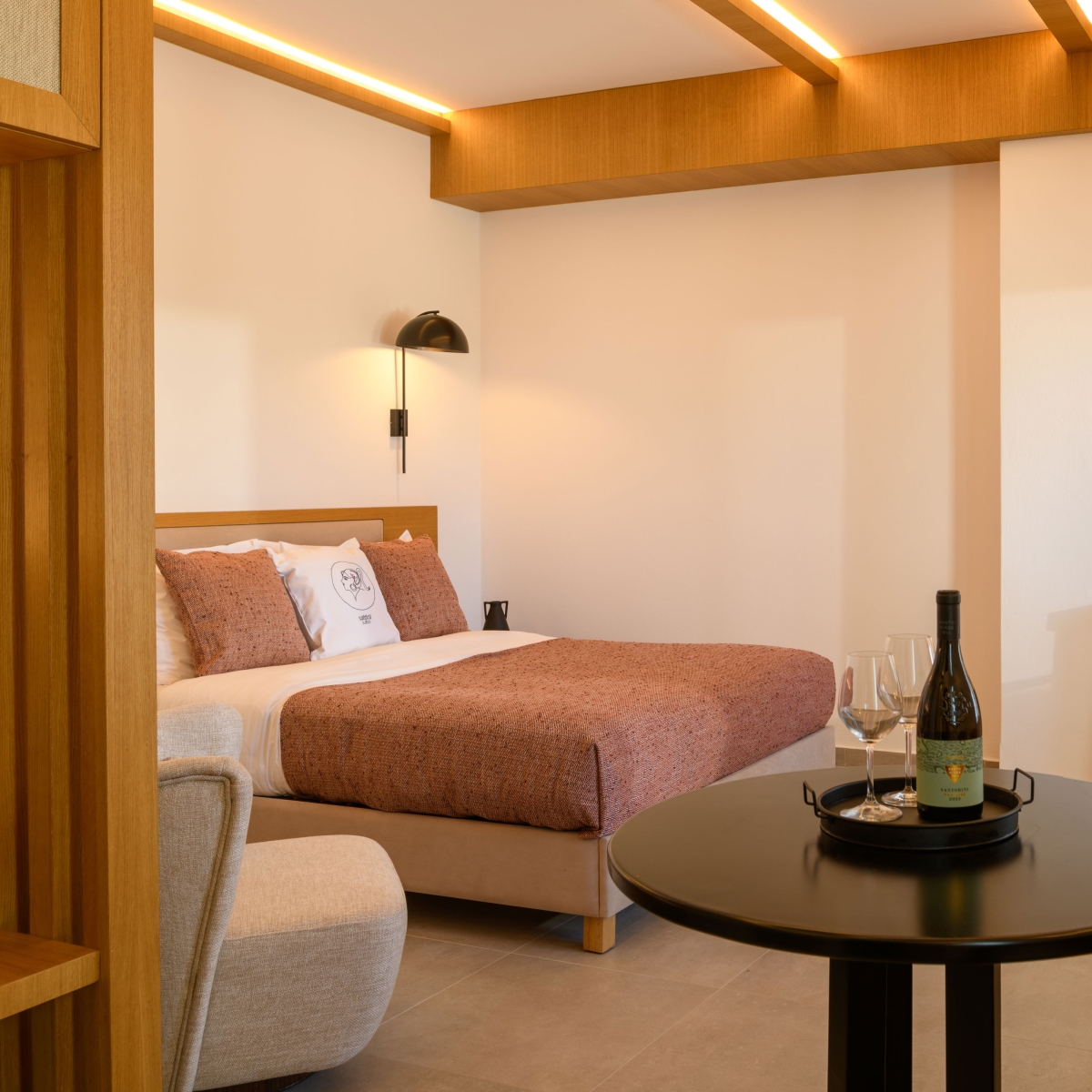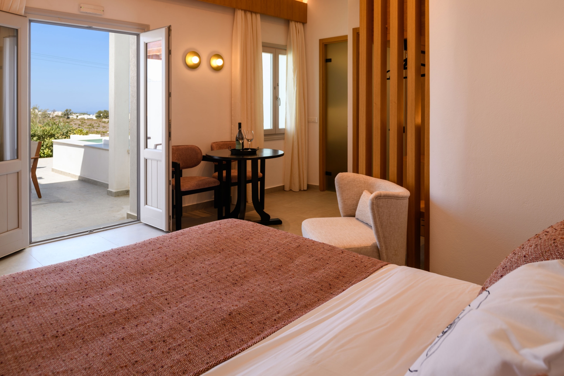 Our 28 m² Deluxe Room offers a king-size bed, rainfall shower, and a private veranda leading to your own outdoor pool. A perfect blend of privacy and relaxation, made for slow mornings and calm island evenings.